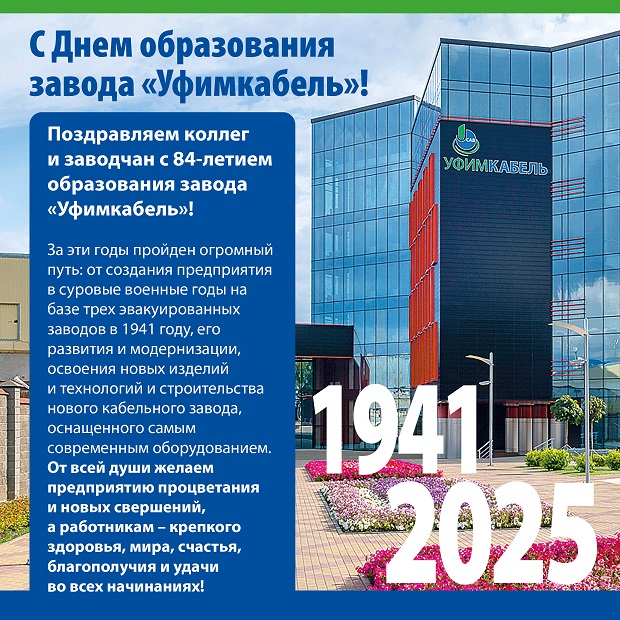 Поздравляем коллег и заводчан с 83-летием образования завода "Уфимкабель"!