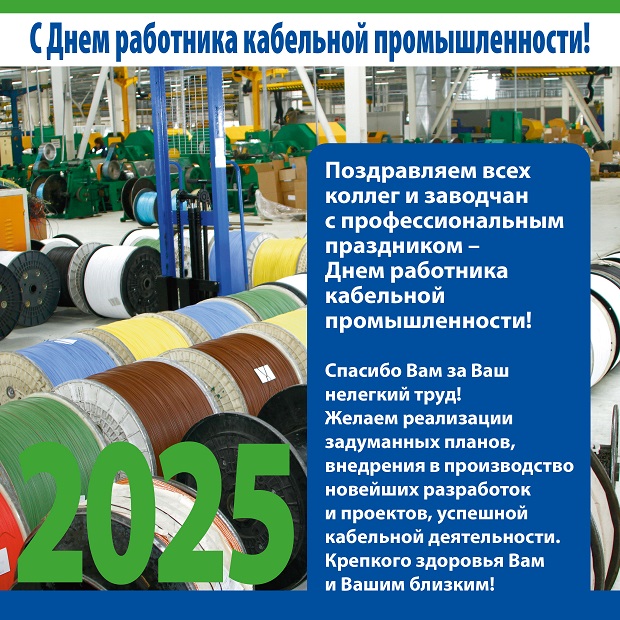 Поздравляем всех коллег и заводчан с профессиональным праздником - Днем Работника кабельной промышленности!